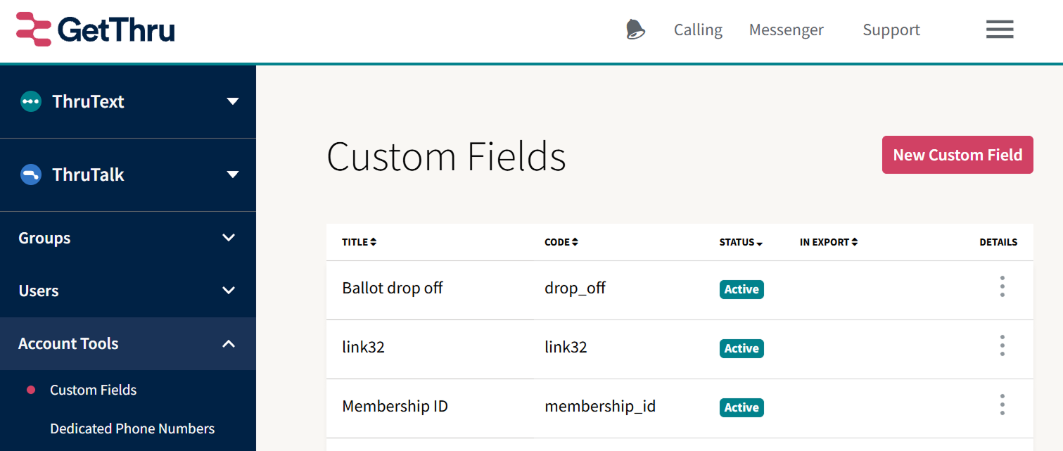 When you add a VAN integration to your account, GetThru automatically creates VAN custom fields. The "Include in exports" setting was automatically enabled for these custom fields. We no longer automatically enable "Include in exports" by default. This will not affect data syncing or change any existing custom fields.